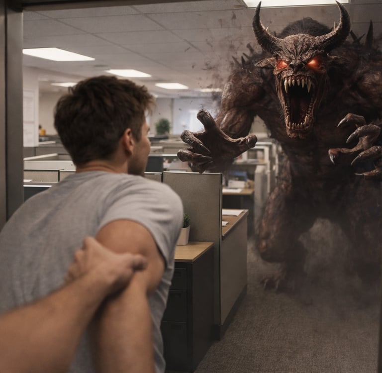 For example, if you are concerned about your boss firing you during an upcoming meeting, then that fear may lead to a nightmare. In the nightmare, you are shoved into a room with a monster who attacks you. You have to try to fend off the monster who forces you out into a forest where you feel lost. The physical experiences of being shoved in a room, defending yourself from a physical attack, and being lost in a forest metaphorically ground the experiences of being forced into a meeting, being verbally attacked, having your job threatened, and the fear of being jobless.